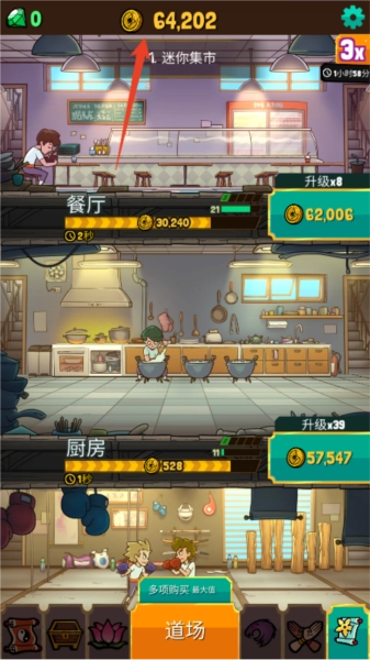 4、升级房间以获取更多金币,解锁新房间后继续积攒金币,之后再进行房间升级。