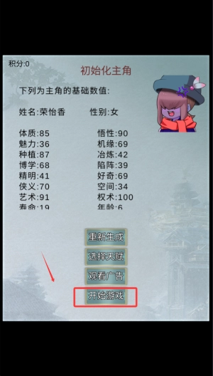 2、在初始界面选择“开始修行”选项进入世界观介绍环节,之后会载入角色创建与背景设定模块。