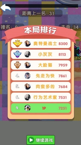 4、对局结束后,你可以查看整体排名,还能选择继续挑战,不断刷新自己的战绩。