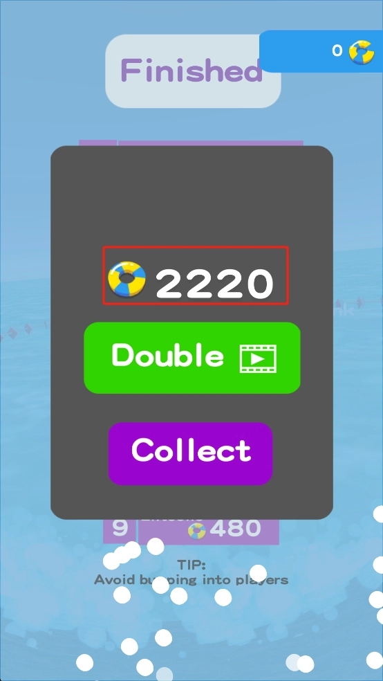 冲过终点线的那一刻,水花会漾开绚烂的波纹,界面随即显示本次冲刺的得分,点击姿势按钮就能开启新一局挑战。