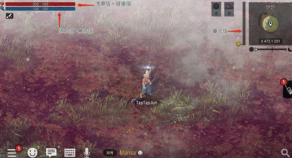 (体力值+能力):在采集、制作等各类行动中会消耗体力值;当与恐龙战斗时,体力值会转化为能力值,战斗里的各种动作都需要消耗能力值,释放特效技能也不例外。能力值会自动恢复,但恢复的总量不能超过角色的体力值上限。