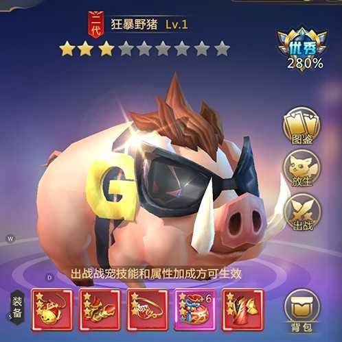 这是一只三星的,它右上角的属性已经提升到280%,这意味着它会比一代战宠强不少。接下来,我们就来了解一下如何获取二代战宠。