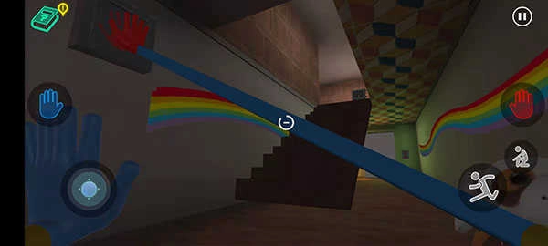 7、手套收集完成后会自动戴到手上,此时能看到墙的两侧有红色和蓝色的手印,玩家只需将手套对准对应的区域,就能打开房门。