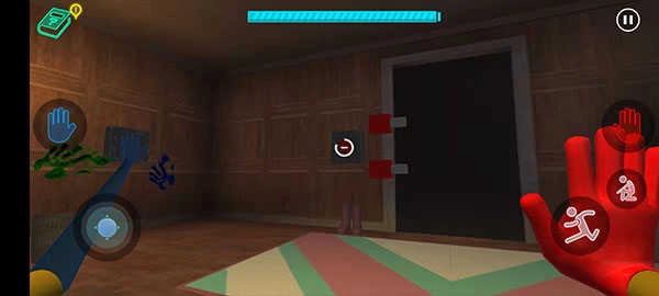 8、玩家打开卧室门后,向左看会发现一个红色手印,同样只需将手套对准相应区域即可。