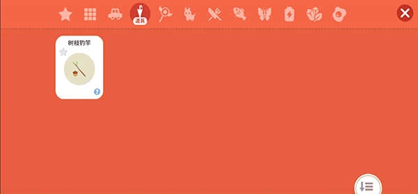 5、打开右下角的背包,进入道具页面,把树枝鱼钩装备上。
