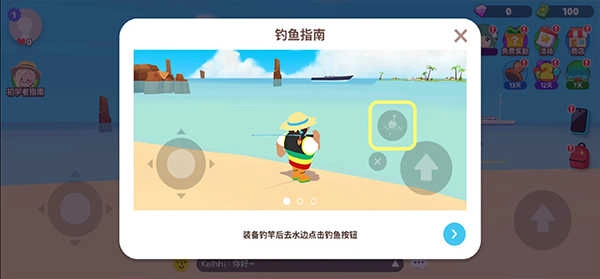 6、然后来到水边钓鱼,点击钓鱼按钮进行钓鱼;