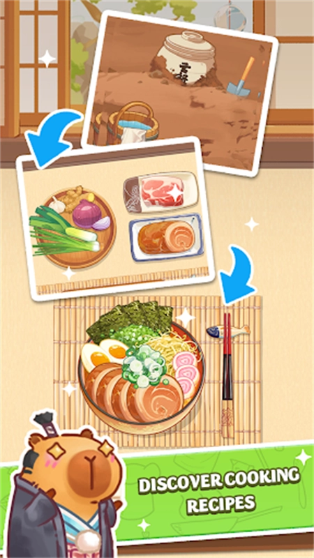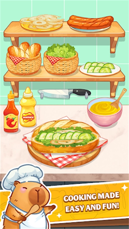烹饪果酱舒适是一款卡通风格的美食烹饪模拟游戏,玩家将化身心灵手巧的卡皮巴拉大厨,在厨房里尽情展示厨艺,制作出一道道诱人可口的佳肴,赢得其他卡皮巴拉伙伴的赞美与喜爱。游戏收录了来自世界各地的丰富美食种类,真实还原每道菜肴的制作流程,搭配无时间限制的轻松玩法,让玩家能自由探索不同的烹饪方式,享受既美观又营养的美味创作过程。