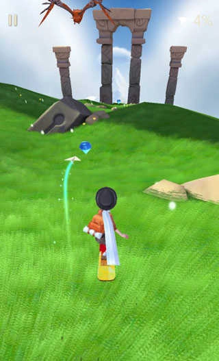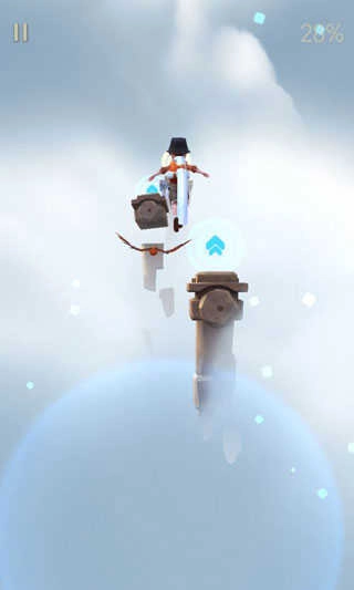 5、场景里会出现单个的高台,上面带有蓝色标识,这同样是弹跳的标识。跳起来后控制左右方向,接着跳到下一个落脚点。有时高台的台阶会发生变化,在变化的同时要快速做出判断,滑动得快一些基本就能应对。