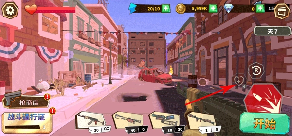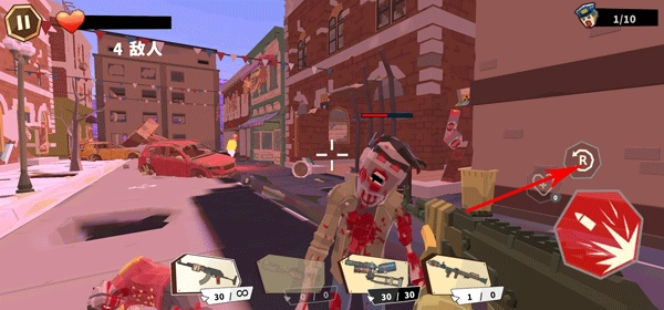 5. “R”按钮旁边的“+”号是回血道具按钮,当血量不足时点击使用,能及时恢复生命值来应对僵尸的围攻。