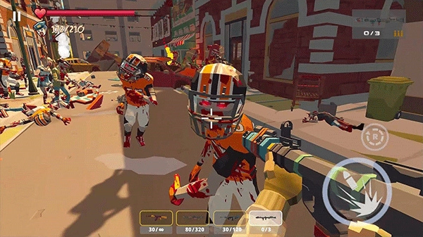 尽管采用低模卡通风格,游戏却以FPS视角呈现,使玩家能更直观地直面僵尸来袭的场景,通过融入血量条、精准瞄准等元素,进一步增强了游戏的真实感与压迫感。