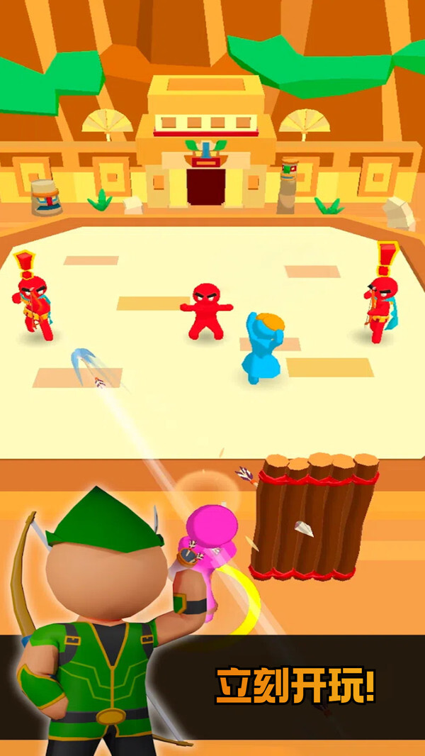 游戏的玩法十分简单,拖动人物即可控制其移动,点击屏幕能操控弓箭,松开手指便会发射箭矢。