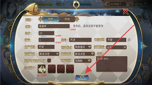 1、进入道具管理界面,选择“保温杯”等所需物品,进入发布页面后填写相关信息,点击“发布”按钮,即可完成道具交易。