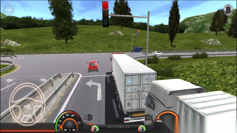 2、借助屏幕上的虚拟方向盘、油门、刹车等操作按键来控制车辆行进,过程中需留意交通信号灯与周边车辆,防止发生碰撞情况。