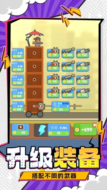 2、打造专属战车,调配射击火力与移动性能,为闯关做好准备。