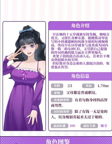 4、独特的性格设定,不同角色有着鲜明的个性,玩家需要据此调整互动方式。