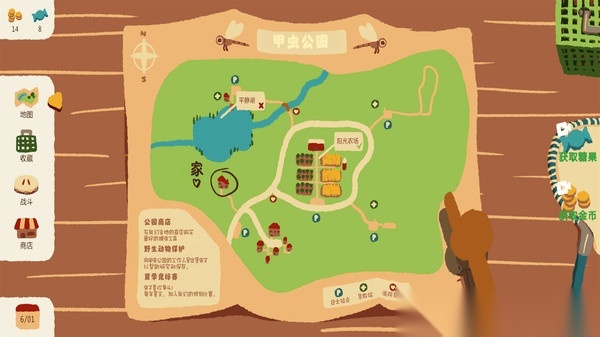 场景探索方面,游戏设置了城市边缘的阳光公园、深山密林中的幽暗角落等多种不同场景。每个场景都具备独特的环境特征与昆虫类别,玩家能够在这些场景里自由探索,搜寻隐藏的昆虫以及稀有道具。