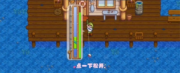5. 当小鱼咬钩后,能看到绿条显著变宽,要控制好力度。