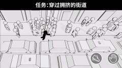 1、玩家可通过手指在屏幕上滑动来操控角色移动,过程中需避开人群与障碍物,最终顺利抵达终点。