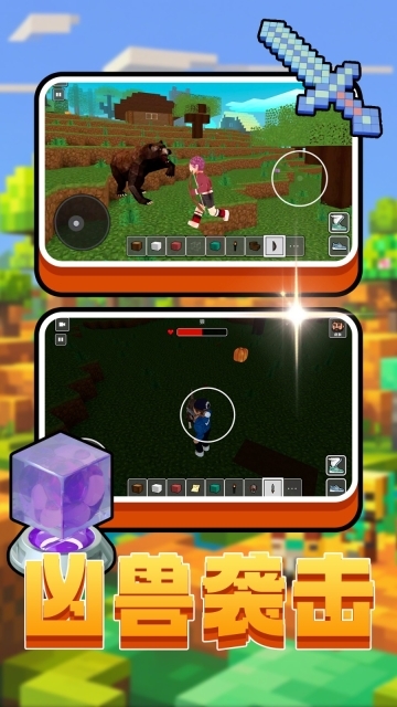 以方块作为基础单元,允许玩家自由搭建建筑、武器和载具。玩家能够借助地形、红石机械等要素设计别具一格的机关,还可以打造自动化农场或者战斗堡垒。