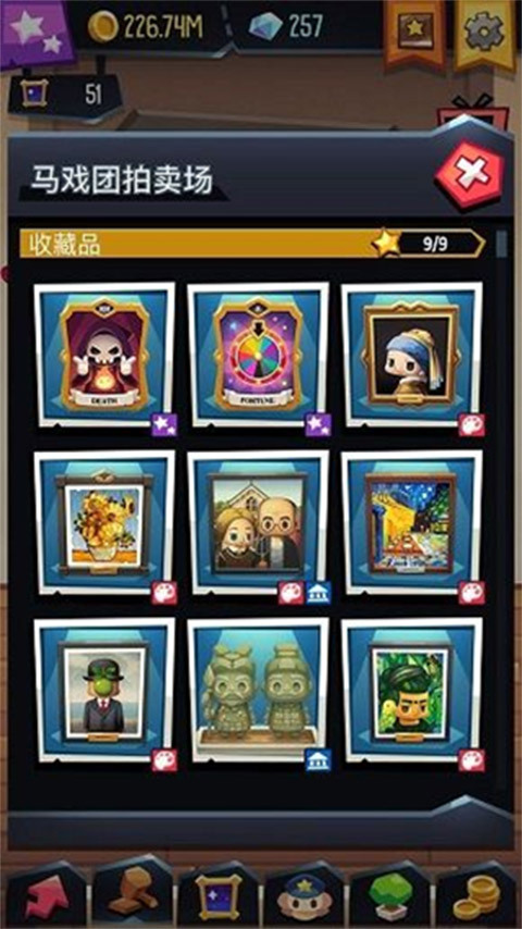 通过完成任务来完善和拓展你的精品画廊;赚取金币与宝石以招募新员工,布置你的展品并参与艺术品拍卖竞价!