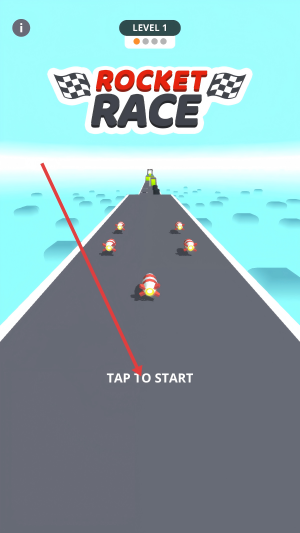 1、点击【TAP-TO-START】,进入【ROCKET-RACE-LEVEL-1】关卡,操控火箭开启比赛。