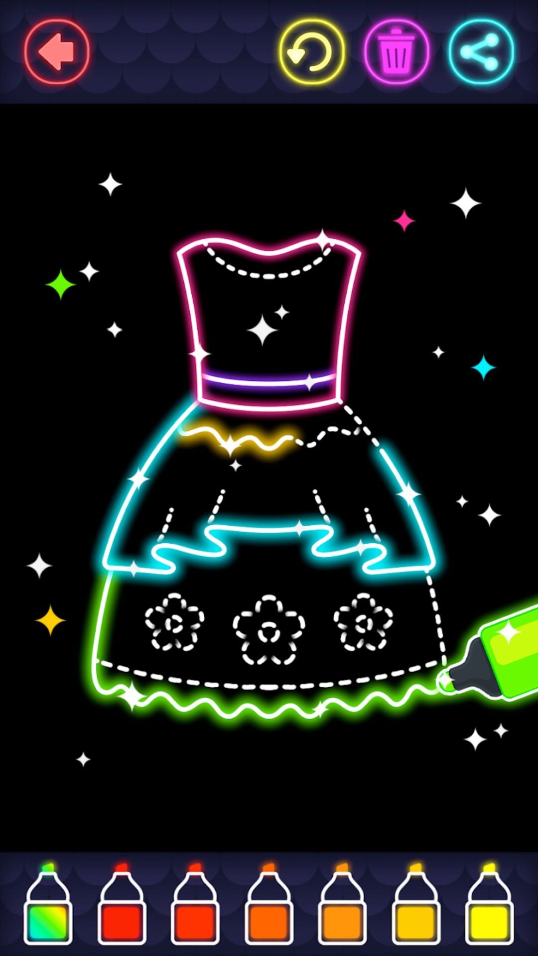 1、挑选好喜欢的绘画图案后,可依据图案的分区情况或者个人的喜好来选定颜色,给空白的区域填上色彩,一步步地完成整幅作品的上色创作。