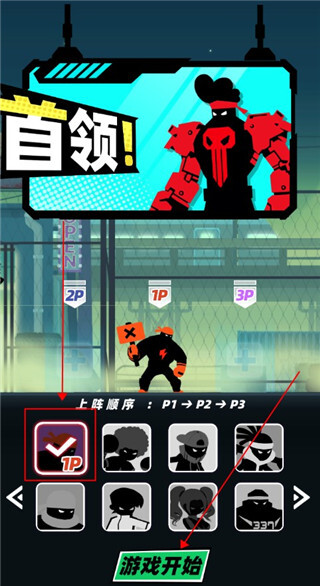 2、启动游戏后,先挑选出场角色,接着点击开始游戏按钮