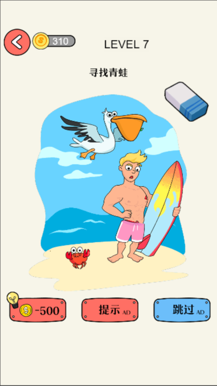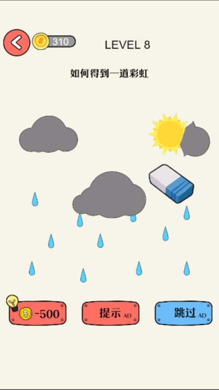 这款游戏设有提示功能,玩家可以用金币购买提示,从而更快速地完成挑战。无论是拯救老奶奶的关卡,还是解锁彩虹的玩法,都能轻松体验。操作十分简单,只需点击橡皮,再拖动手指移动,就能完成相关操作。