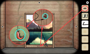 6、锈湖视角下的操作步骤:把虫子挂到鱼钩上,然后反复点击鱼竿进行抛竿和收竿的动作,最终会钓上来一只虾。
