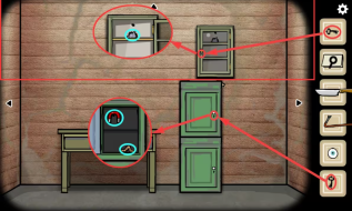 8、木柜/木桌视角:用从缝隙夹层里拿到的横置钥匙,打开木柜视角墙上的柜子,得到霉菌;用从虾里取出的竖置钥匙,打开木桌视角柜子的上柜门,获取磁铁和第二条虫子。