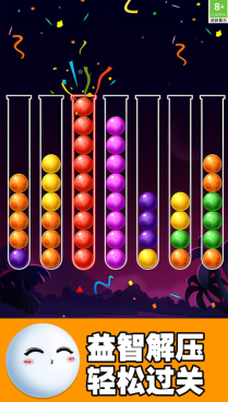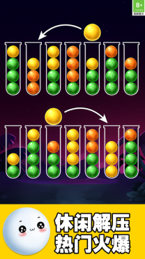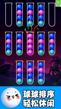 《球球快乐排序》是一款兼具轻松感与烧脑特质的颜色分类益智游戏。玩家只需通过点击操作,就能把各色小球分类收纳到对应的试管里,让原本杂乱的状态逐步变得井然有序。游戏画面简洁却蕴含着丰富的逻辑挑战,每完成一步排序都能带来满满的成就感。不管是想休闲放松还是锻炼思维,它都能让你在愉快的氛围中感受秩序之美~