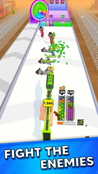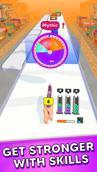 玩家得在持续的跑酷进程里,开枪射击并取得最终的胜利。