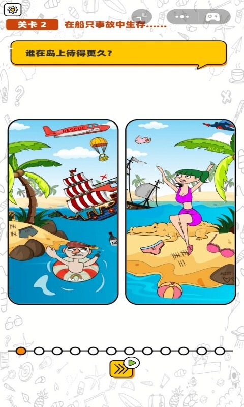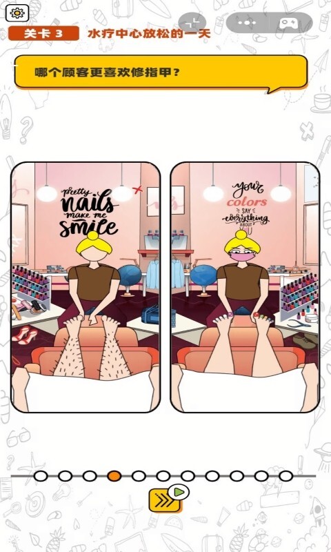 2、所有关卡都需要你对比看似几乎一样的照片,仔细判断出其中的细微差别。