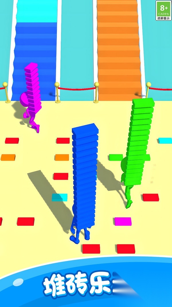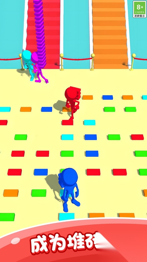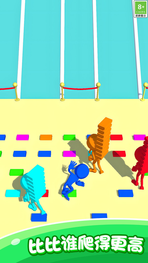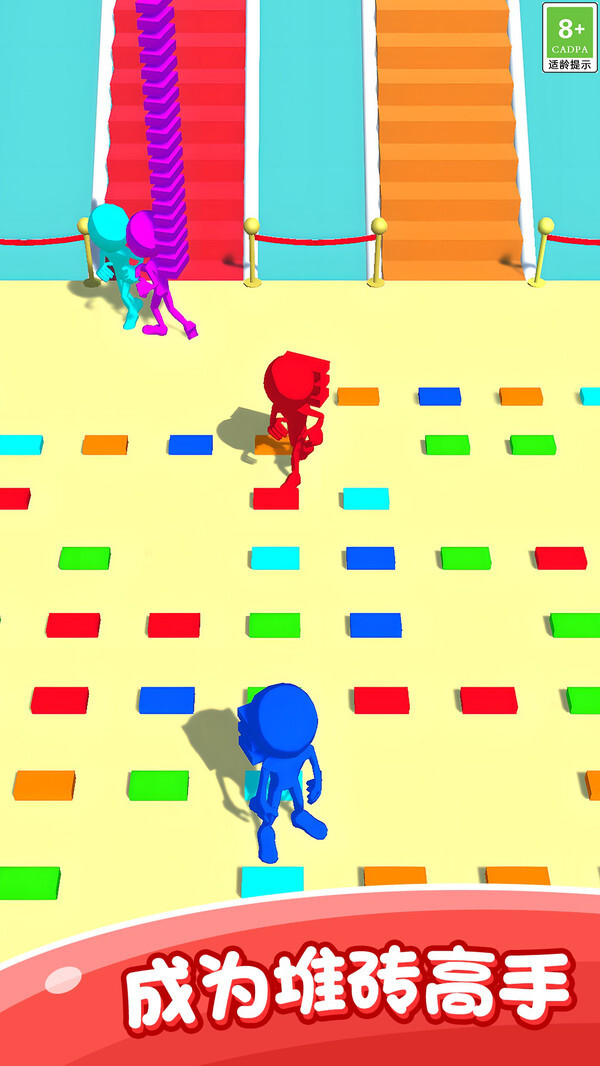 1. 玩家得在规定时间里迅速收集砖块,靠灵活的头脑与敏捷的反应搭建梯子,朝着终点冲刺。