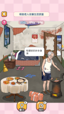 2、在第一关里,你可以通过把金币拖拽到那些破旧的家具上,来帮助老人一步步地改善他的居住环境。