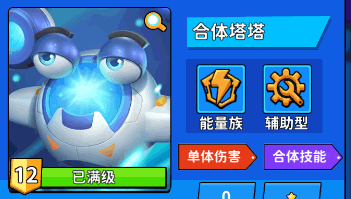 最后我们添加了一个万能合成塔,这样即使场上没有同星级同种类的炮塔,也能继续进行升星强化;另外,合体塔的技能在合体时会额外提升攻击力,为其他炮塔提供额外的攻击加成。