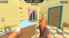3、在场景里找找那些能互动的物品,像花瓶、拖鞋或者窗帘都行,把它们捡起来扔出去,就能制造出混乱的效果。