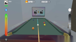 2、游戏采用触屏操作方式控制击球,玩家可在屏幕上拖动以调整击球点,并借助辅助线锁定目标球与袋口之间的连线。