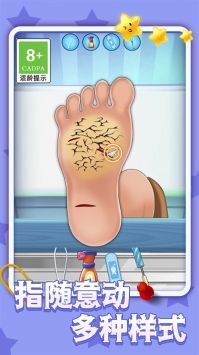 在这款游戏里,你的任务是帮助小姐姐处理她的脚部伤势,游戏过程既解压又好玩,绝对是消磨时间的好选择。