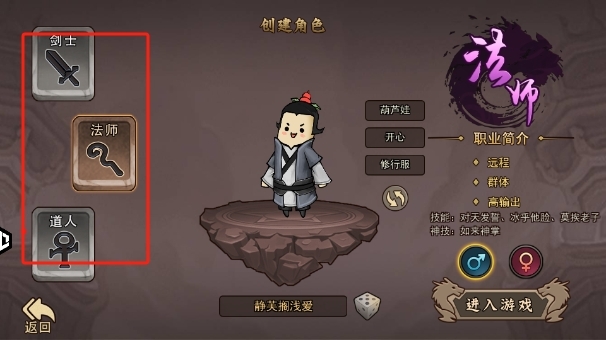 在游戏界面的左侧区域,您可以找到多个不同的职业角色可供挑选。每个角色都具备独一无二的技能以及各自的背景故事,选一个和您个性相契合的职业开启冒险吧!
