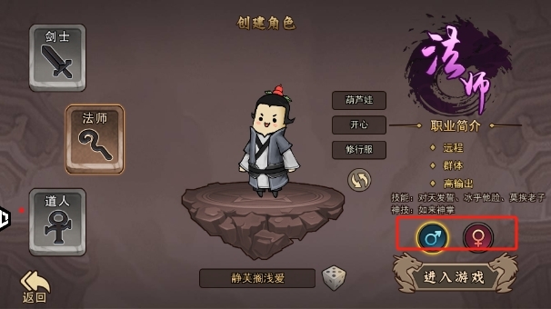 3.性别设定:定义您的角色形象