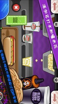 首先去订餐点为饥肠辘辘的顾客备好菜单,接着返回厨房制作热狗,翻转鲜嫩多汁的热狗肠。把各式美味调料添加到热狗上,再快速取出可口的饮料、端上新鲜的爆米花,这样一顿丰盛的热狗快餐就完成了。