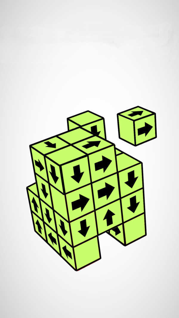 大家能够通过点击屏幕执行一系列操作,这款游戏最考验人的地方在于时机的把控——得找准关键节点再发射子弹。游戏里你需要点击屏幕,让所有方块都朝远处飞去,每个方块带有颜色的一面就是它移动的方向,玩家要做的就是解开这些错综复杂的结构。