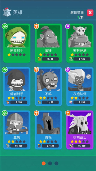 7、游戏中还拥有多种英雄等你解锁,保卫你的城堡;