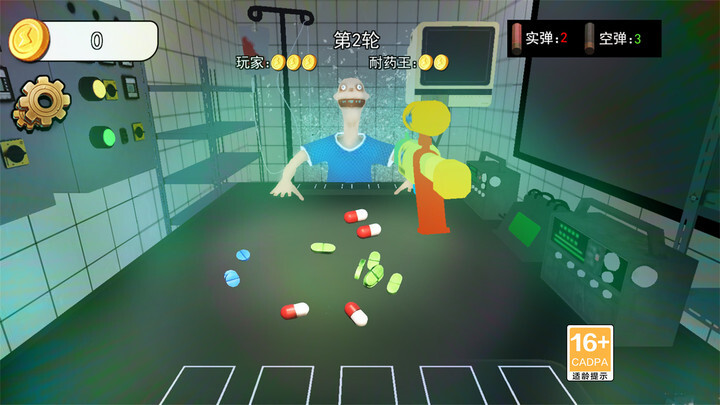 3、游戏进行时会运用丰富的音效与视觉特效来提升玩家的代入感,例如每当有玩家扣动扳机,就会响起一声清脆的“咔嚓”声,令人心生寒意。《恶魔的轮盘》是一款恐怖题材的桌面游戏,其核心玩法脱胎于俄罗斯轮盘赌。不过它更偏向逻辑简单的博弈游戏,有着比较清晰的通关方法。玩家在游戏里扮演传奇耐药王,与恶魔进行一场融合心理博弈和生存策略的冒险,要在致命药丸的轮盘赌局中试炼自己的胆识与判断力。而且因为游戏的第一视角运镜、演出细节都较为成熟,能让玩家获得沉浸式体验。和俄罗斯轮盘赌相比,游戏里用的是霰弹枪而非传统的转轮手枪。每一轮开始时,恶魔会往霰弹枪里装填一定数量的实弹(红色)和空弹(灰色),玩家需要推测下一发子弹是实弹还是空弹,再决定是朝自己开枪还是朝对方开枪。