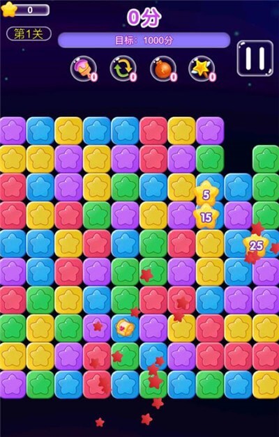 3、一次性消除的星星数量越多,你能获得的额外分数加成也就越多。