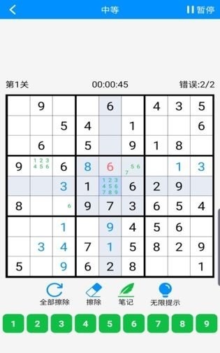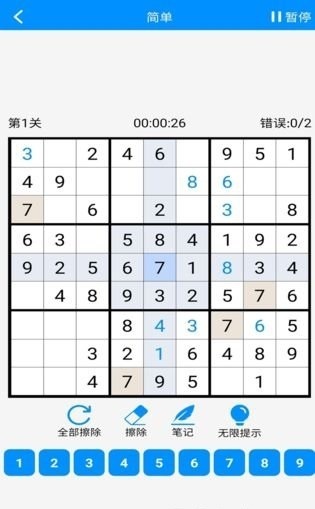 数独挑战 这是一款非常考验思维能力的游戏,玩家可以自由选择多种挑战模式,每个模式的难度各不相同。新手入门时可以从初级模式开始,逐步掌握解题技巧;挑战过程中还能随时使用标记和擦除功能,帮助大家更顺利地谜题。