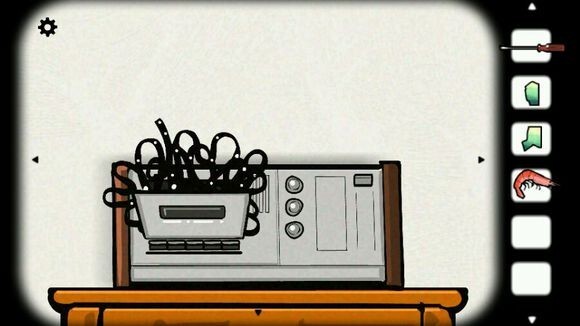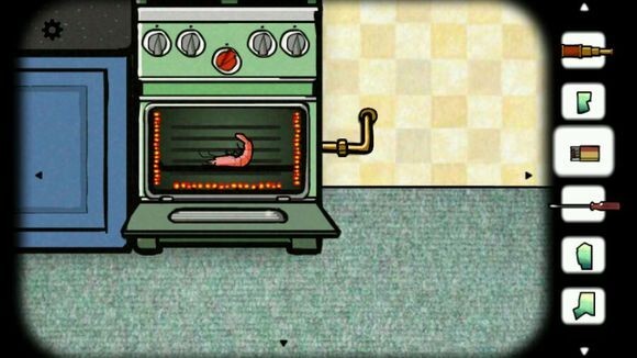 用钥匙打开柜子,输入数字密码后,拿到了“话虾”?接着用螺丝刀撬开烤箱,把虾放进去,划燃火柴(同时拧动红色旋钮)点火烤制,再次打开烤箱时,里面出现了一幅画(是关于科学的吗?),画中还有黑影,最终得到了一个黑方块。