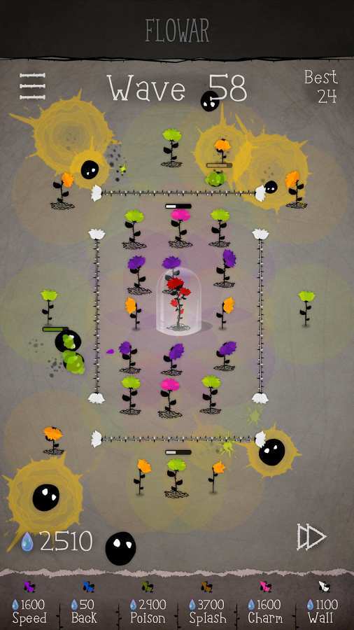 1、这是花的战争,升级和治愈花摧毁敌人。