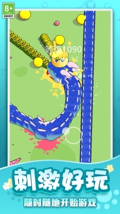 3、玩家还可以培养小蛇,让小蛇无限成长变长,小蛇需要通过吞噬地图里的小圆点,来增加自身的长度;